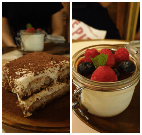 Place au dessert. Le diner arrive à son terme, le sucré fait son entrée en scéne avec une Panna cotta aux fruits rouges originale. Fondante et rafraichissante, on ressent le fait maison de chez Pepita. Comment quitter une table sans goûter un Tiramisu Maison au café « costadoro » Bio ? C’est impossible. Bien que légèrement chargé, le dessert est pertinent et prometteur avec un dosage parfait de café.