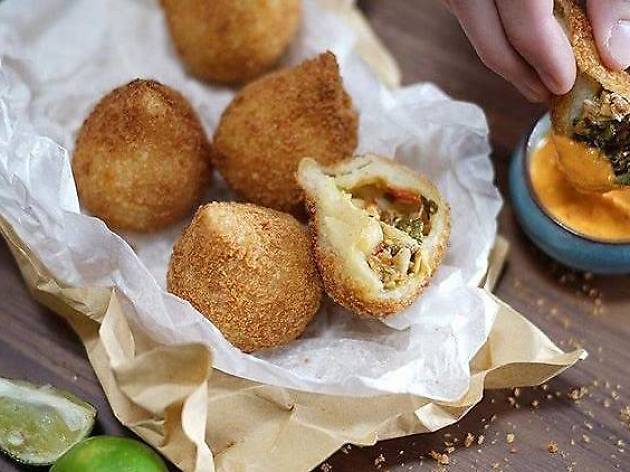 Notre coeur balance, il y a plusieurs suggestions intéréssantes. Les Dadinhos de tapioca étaient le meilleur choix possible pour commencer cette dégustation. Cette spécialité brésilienne est composée de frits de tapioca et fromage ainsi que sa sauce aigre douce. Le deuxième choix se porte sur les Coxinhas de frango, une entrée présentant plusieurs croquettes brésiliennes de poulet et gombo, sauce piment maison. Une premiére étape séduisante ou l’on retrouve les gouts et saveurs de l’étranger.