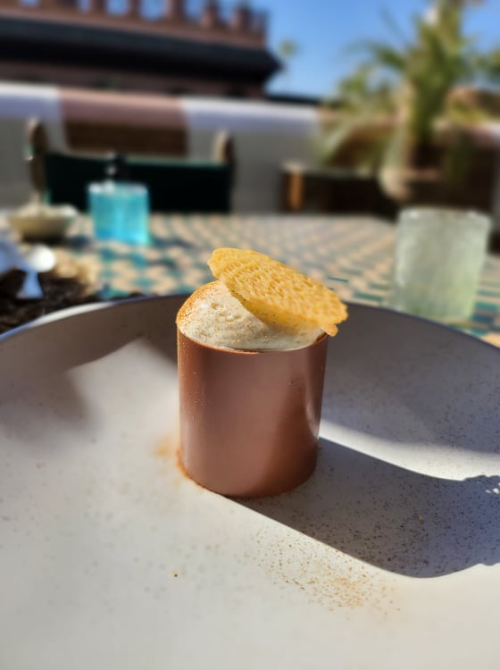 Face à nos plats, une vue imprenable sur plusieurs Riads de l’hôtel, le décor est à la fois majestueux dans un espace rooftop et intimiste dans son ensemble. La Table du Souk, c’est avant tout des éléments de décoration qui ont été réalisés par des maitres en la matière, on retrouve ce style oriental/andalou et une architecture riche et ancestrale.
