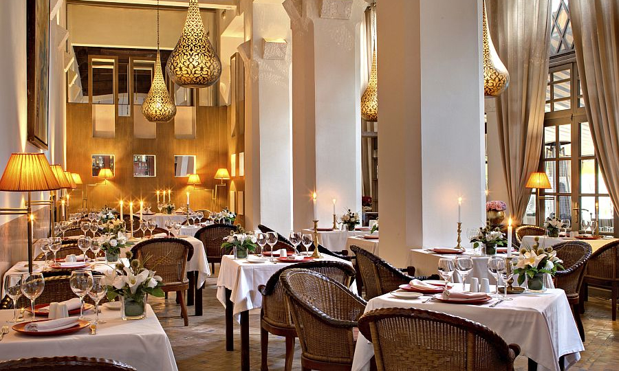 C’est dans l’ancien salon de réception du Riad, sous les hauts plafonds de cèdre sculpté que nous avons découvert le restaurant Les Jardins de la Médina. Entouré d’un espace vert unique, votre repas se déguste dans un ambiance luxuriante à couper le souffle.
