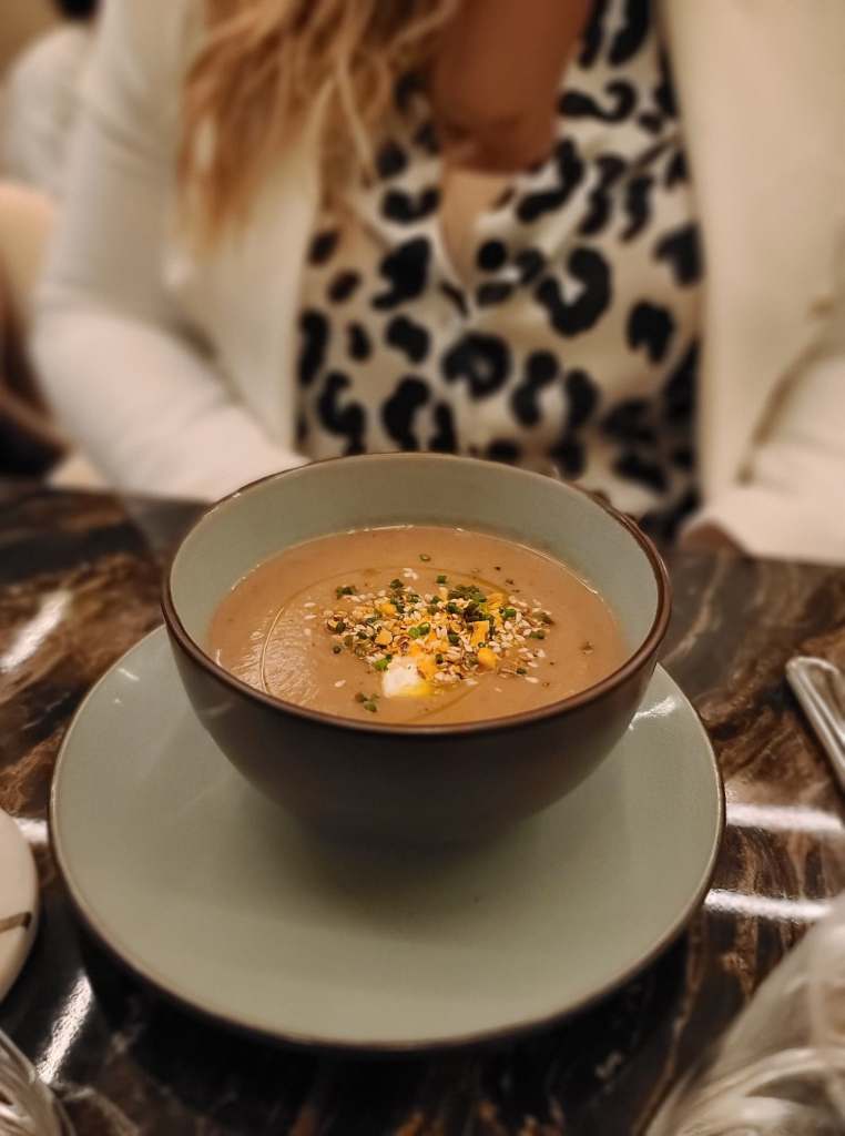 L’entrée en matière se fait avec brio grâce à la Burrata panée au Gomasio et son aubergine en fritto et caviar fumé. Avec ces premiers mets, nous rentrons dans une sphére culinaire attentionnée et prometteuse. La seconde présentation gustative apportera de nouvelles intentions, en effet, le Velouté de châtaignes, ricotta épices dukkah promet un résultat de qualité.