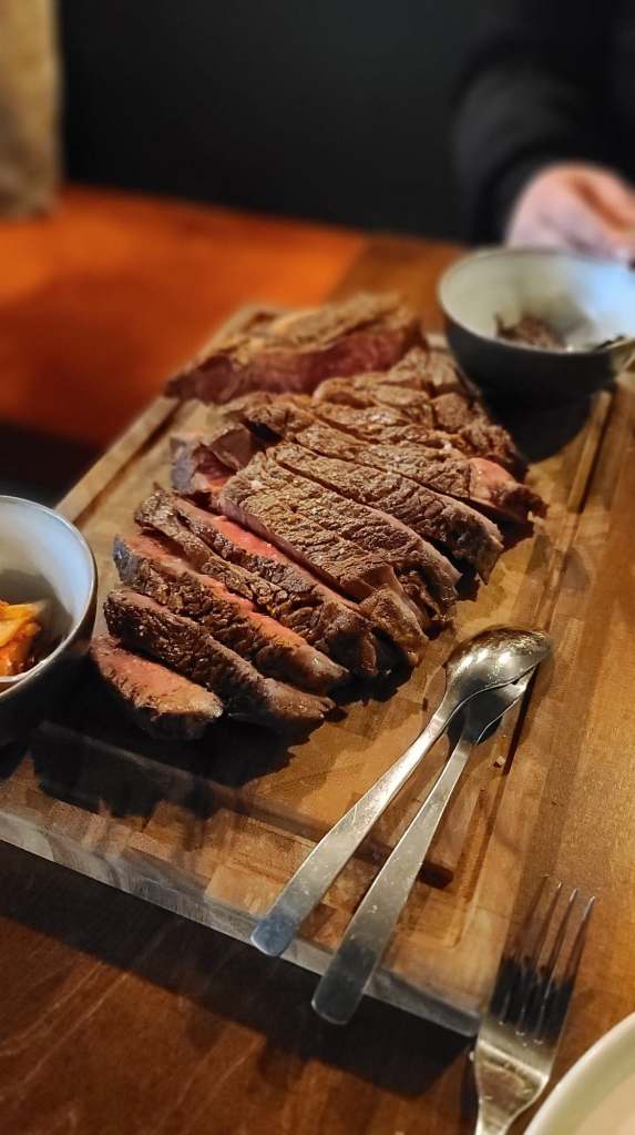 Après un met qui donne le ton, notre chemin s’arrête sur la Côte de Boeuf Normande pour 2 personnes. Avec des légumes printaniers en accompagnement, la composition estivale frôle la perfection. La viande est à la fois tendre, bien assaisonnée, fondante en bouche, c’est une explosion culinaire qui vous fera tourner la tête.