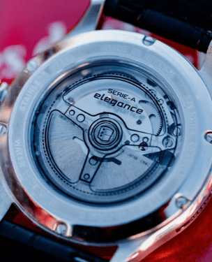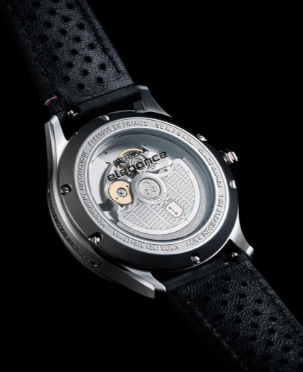 L’Elegance 24h Black est unmodèle qui raconte une histoire. Dans son cadran, on pense au pilote automobile et son charisme fait le reste. La montre séduit donc au premier coup d’œil par son design stylé et élégant. Mais ce que réserve sa face cachée n’est pas en reste. Son calibre Miyota 8215, remontage automatique en est le cœur et il est dévoilé par le fond transparent éblouissant.