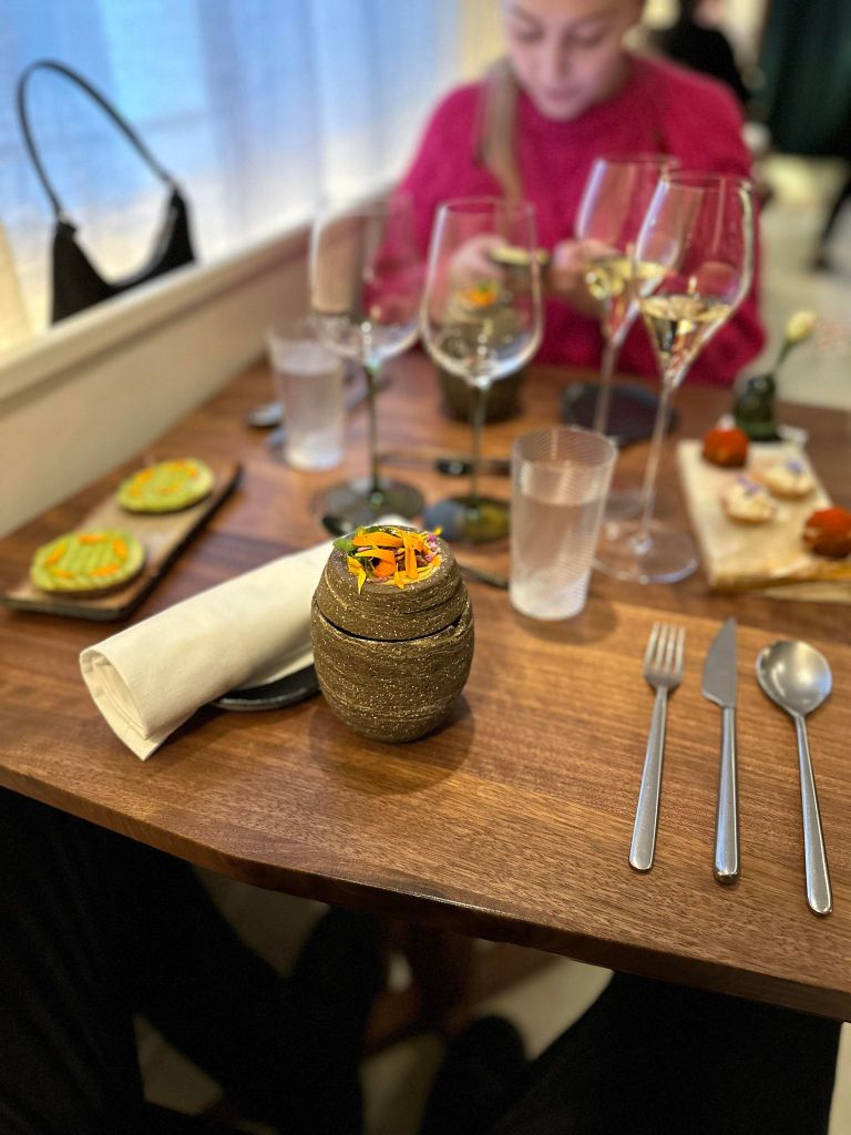 Sans dévoiler toutes les surprises culinaires, nous pouvons en revanche vous assurez que vous passerez un excellent moment grâce à un menu dégustation en quatre, cinq voire sept temps. Évidemment, les portions sont ajustées pour éviter de ne pas arriver au bout de son repas.