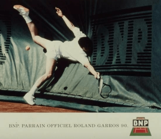 Plus tard, en 1973, la relation entre la BNP et le tennis prend un tournant majeur. Philippe Chatrier, président de la Fédération Française de Tennis, souhaite agrandir le court central de Roland-Garros – un court portant désormais son nom, depuis 2001. L’agence BNP d’Auteuil, tenant alors le compte de la FFT, accompagne et finance les travaux. Les trois lettres « BNP » apparaissent désormais sur la bâche de fond de court.