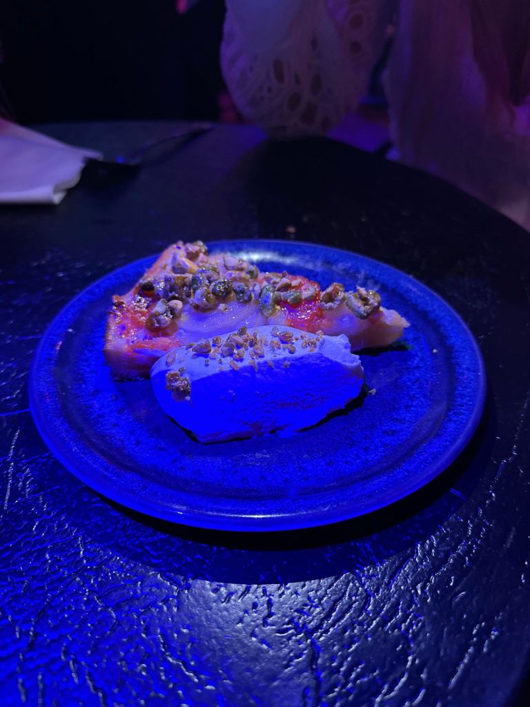Passons ensuite aux plats, le coeur du diner qui tient toutes ses promesses avec un voyage au Peru et son Ceviche de Daurade marinée au leche de tigre, salsa criolla légèrement pimentée, citron vert, coriandre, oignon rouge, et ses tomates cerises servie avec du manioc frit.