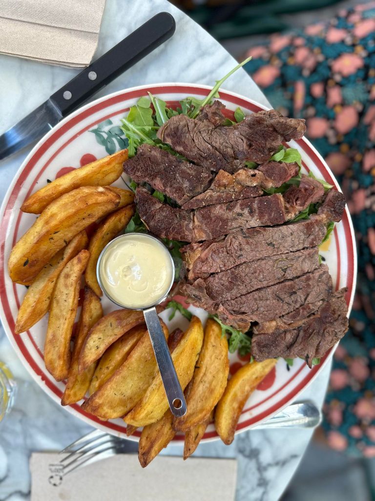 Du côté des plats, plusieurs suggestions attisent notre curiosité. Nous débutons par la Tagliata de bœuf et ses pommes de terre au four épicées ainsi que sa mayonnaise maison. Fondante en bouche, la pièce de viande réveille nos papilles.