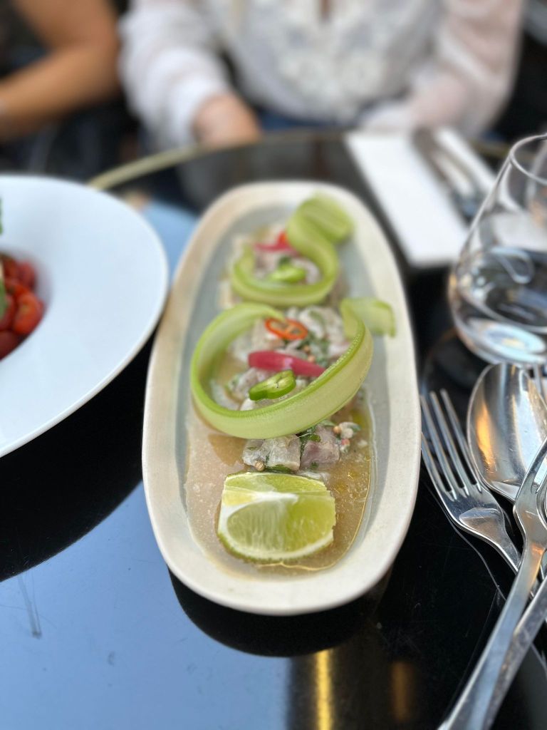 Pour entamer cette dégustation, nous avons opté pour des entrées à partager : le Ceviche de Bar frais, sauce au Yuzu et la Burrata Pugliese, ses tomates cerises, son huile d’olive et du basilic frais. Deux choix rafraîchissants par ce temps caniculaire qui fait du bien au corps et aux papilles.