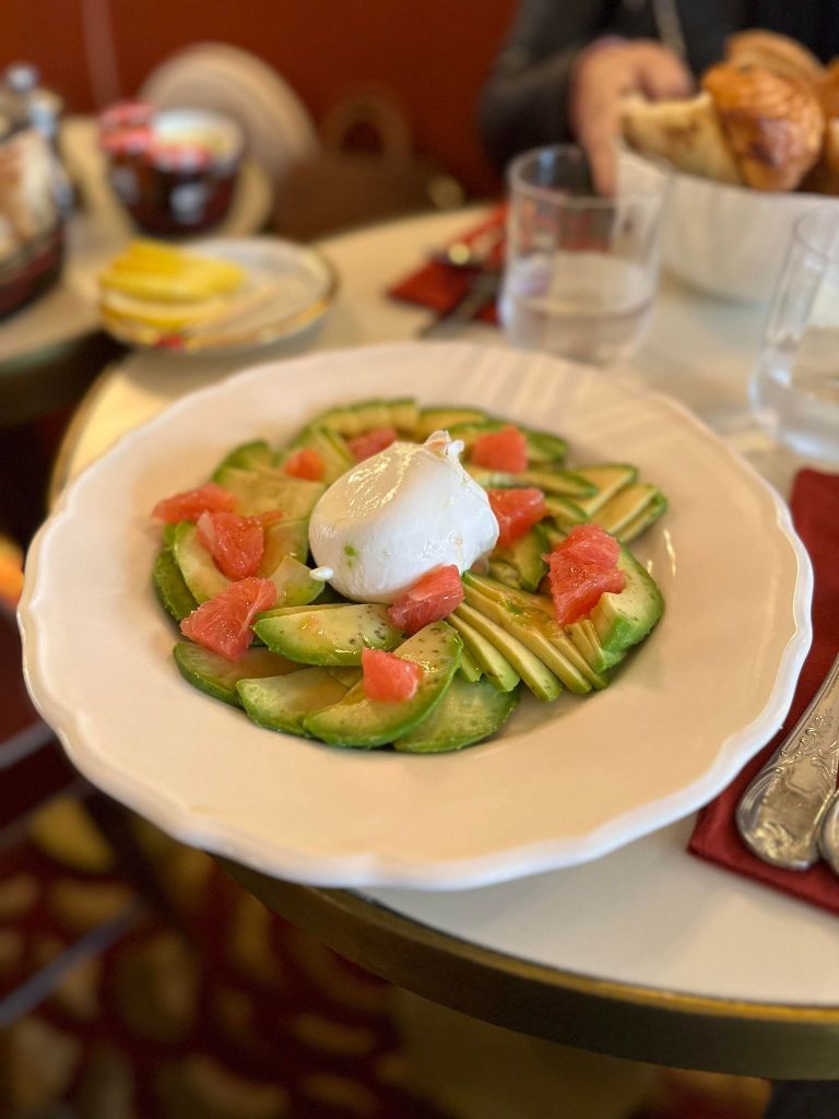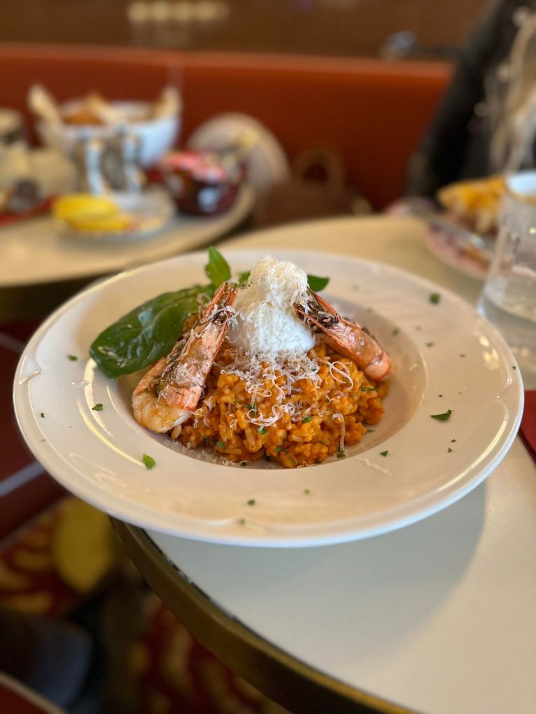 Nous restons toujours en Italie avec le Risotto aux Gambas et sa Burrata, un plat chaleureux, gourmand et original. Parallèlement, nous prenons aussi l’option Petit-déjeuner du Dandino avec le Panier comprenant des viennoiseries, brioches et focaccias. Un vrai délice.