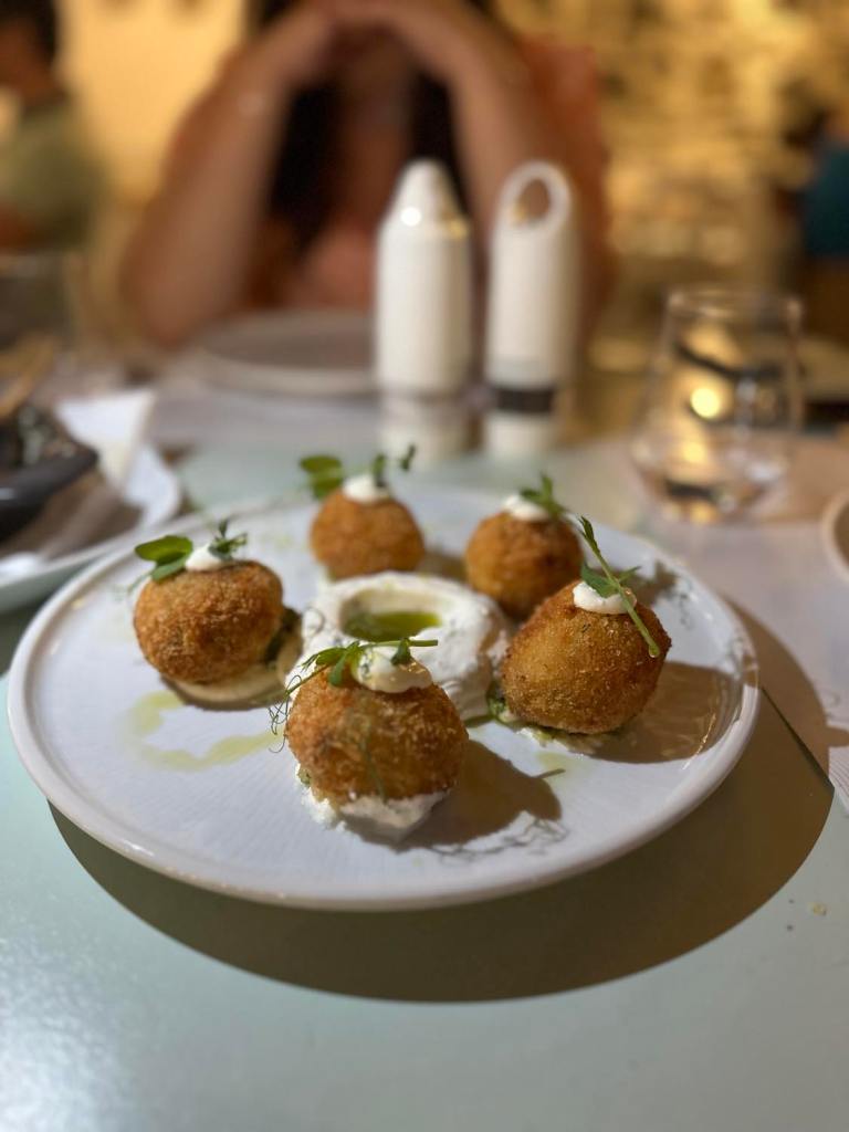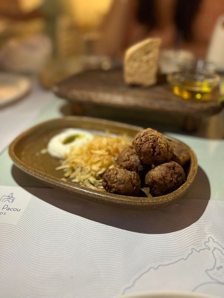 Pour plus de partage, nous décidons de tester aussi les Meatballs, ces beignets de fêta sensationnels qui fondent en bouche, un régal. Nous terminerons avec le Chickpeas et son poulpe grillé au feu de bois. Une sensation parfaite en bouche et une texture sans pareil.