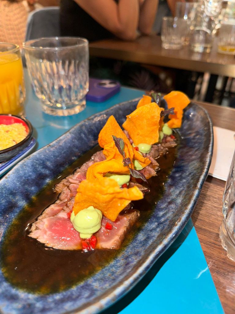 Après le Brésil, place au Japon et la dégustation du Beef tataki et sa sauce ponzu/yuzu/kosho, crème d’avocat au wasabi, chili et chips de patate douce. Le mariage parfait entre les deux pays se dévoile réellement avec le Ceviche Nikkei, ces dés de poisson blanc, avocat, sauce soja, mirin, citron vert et leche de tigre. Vous pourrez terminer sur une note sucrée grâce à un dessert du jour qui change régulièrement.