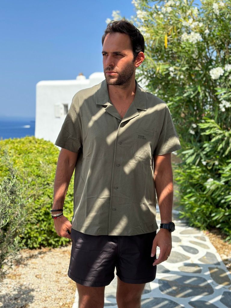 Nous avons également redécouvert un modéle phare de la maison From Future, la Chemise Manches Courtes Uni kaki. Le produit est muni d’un col cranté, d’une fermeture boutonnée et de manches courtes, cette chemise en coton affiche une poche poitrine ornée d’une broderie From Future.