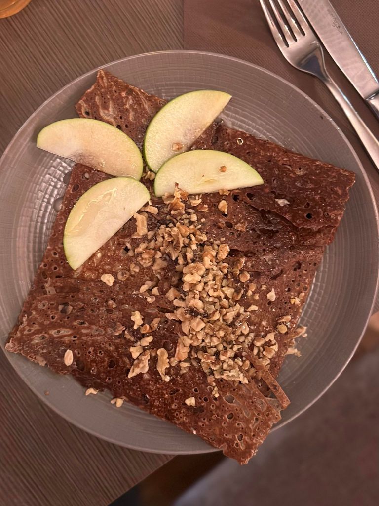 L’histoire du restaurant est sublime, le bar et son cuivre vieux d’un siècle et son plancher en chêne qui l’accompagne. Des matières nobles, un décor plus contemporain vient compléter l’ensemble, des fauteuils confortables vous permettrons d’apprécier nos galettes astucieuses et crêpes maison. Au coeur du lieu, nous avons pu savourer des spécialités bretonnes accompagnées d’un cidre Val-de-Rance.