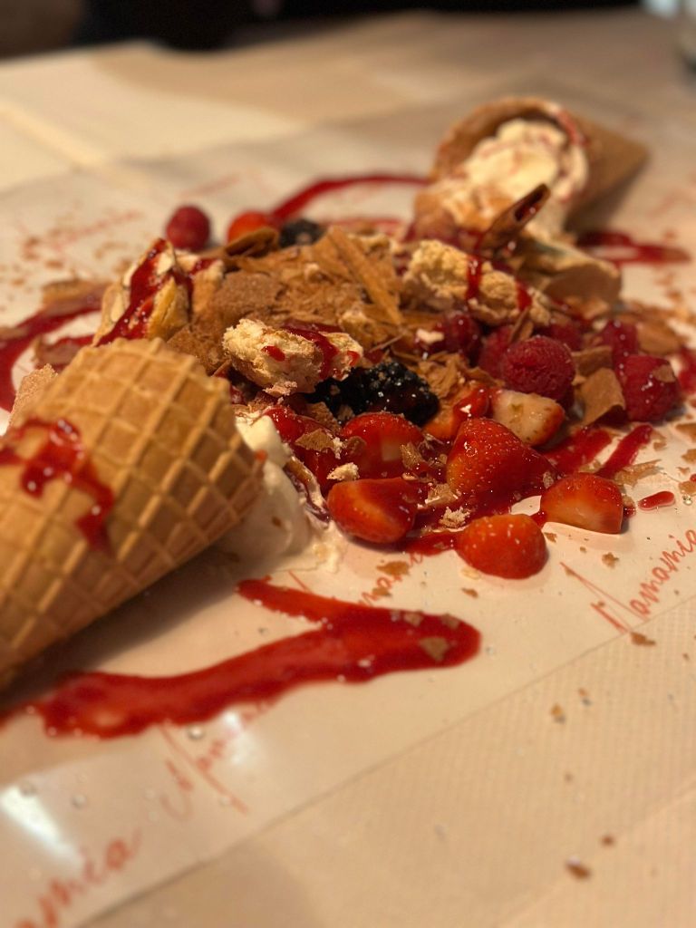 La Fallia Pavlova aux fruits rouges est sans aucun doute la plus belle surprise de la soirée, une explosion de crème, de fruits rouges et de biscuit qui clôture un dîner sur une note brillante. Il est 21h45, la musique est plus forte, l’effet festif s’invite petit à petit pour une soirée qui s’annonce mémorable…