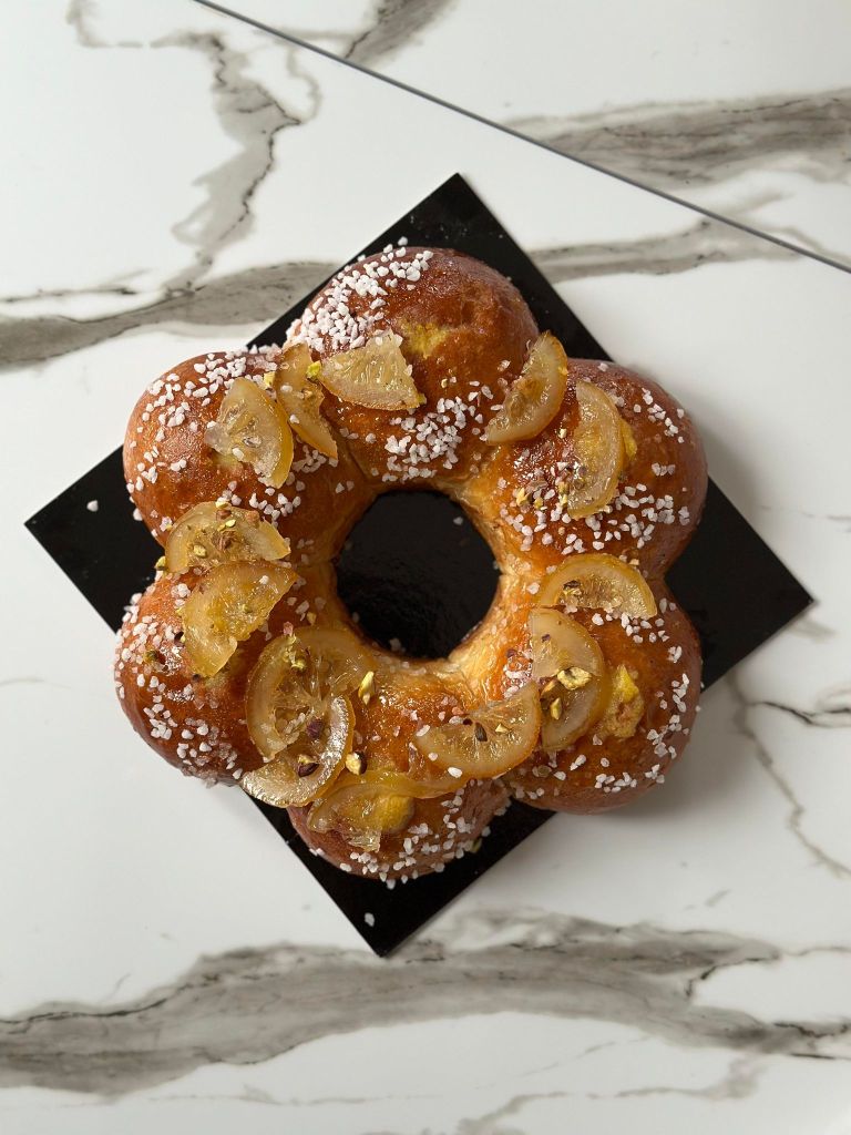 Les plus grands pâtissiers optent pour une brioche des Rois à la fleur d’oranger, aux oranges confites, avec pistaches et noisettes. Jolie Miche propose en effet cette idée de brioche fruitée en ajoutant une crème et un confit d’orange. Mais la nuance avec une touche de soleil tout droit venu du sud de la France avec sa pâte façon calisson est un petit bonheur.