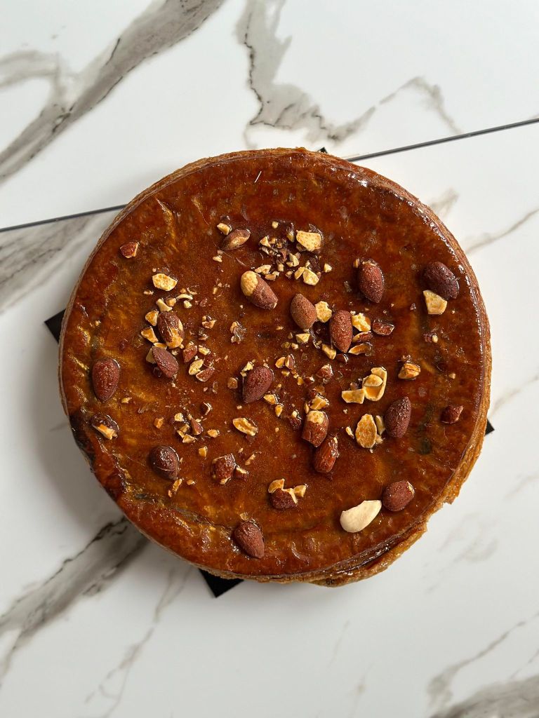 Réputée pour sa richesse en frangipane et son feuilletage croustillant, cette galette, simple en apparence, révèle une complexité qui témoigne d’un certain savoir-faire. Elle est confectionnée avec une pâte feuilletée légère et une généreuse frangipane à la crème d’amande.