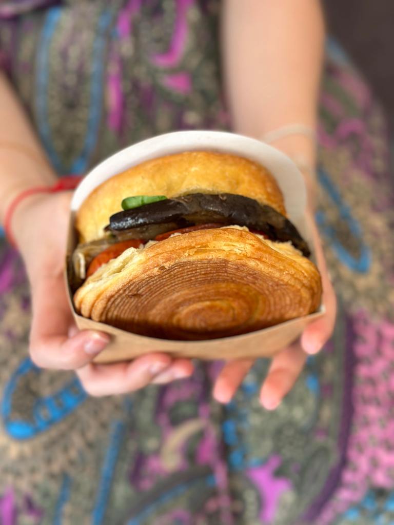Ce bagel moelleux et légèrement croustillant est garni de saumon fumé délicat, d’avocat frais et crémeux, et de cream cheese onctueux. Dans un même esprit, le Roll Veggie va satisfaire les amoureux de bagels, ce dernier est un roulé croustillant et savoureux à base de pâte à croissant, garni d’aubergine, de tomates confites, d’épinards, de mozzarella et de basilic.