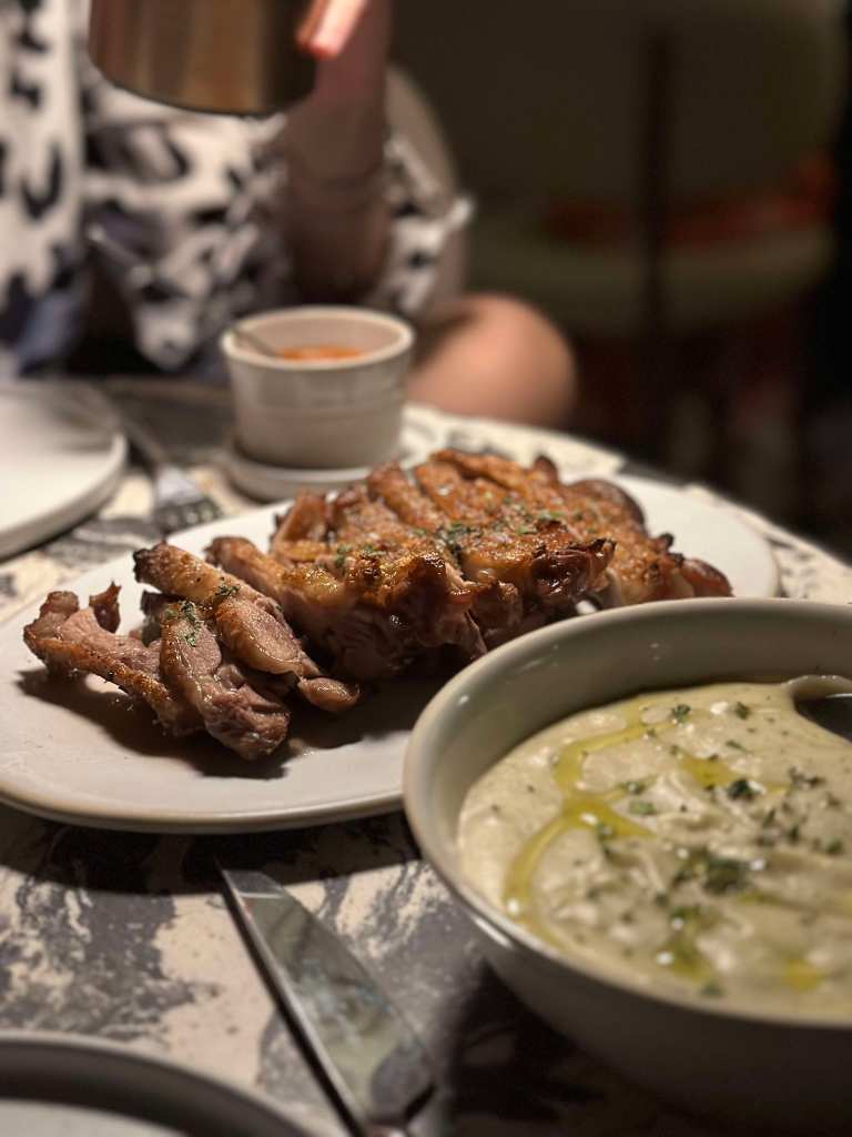 Nous passerons ensuite aux plats, une pizza à la truffe et son fromage frais, la combinaison est parfaite et nous passerons un moment culinaire très agréable. Tout comme avec les brochettes de poulet, toujours cuites au grill avec cet arôme particulier et unique.