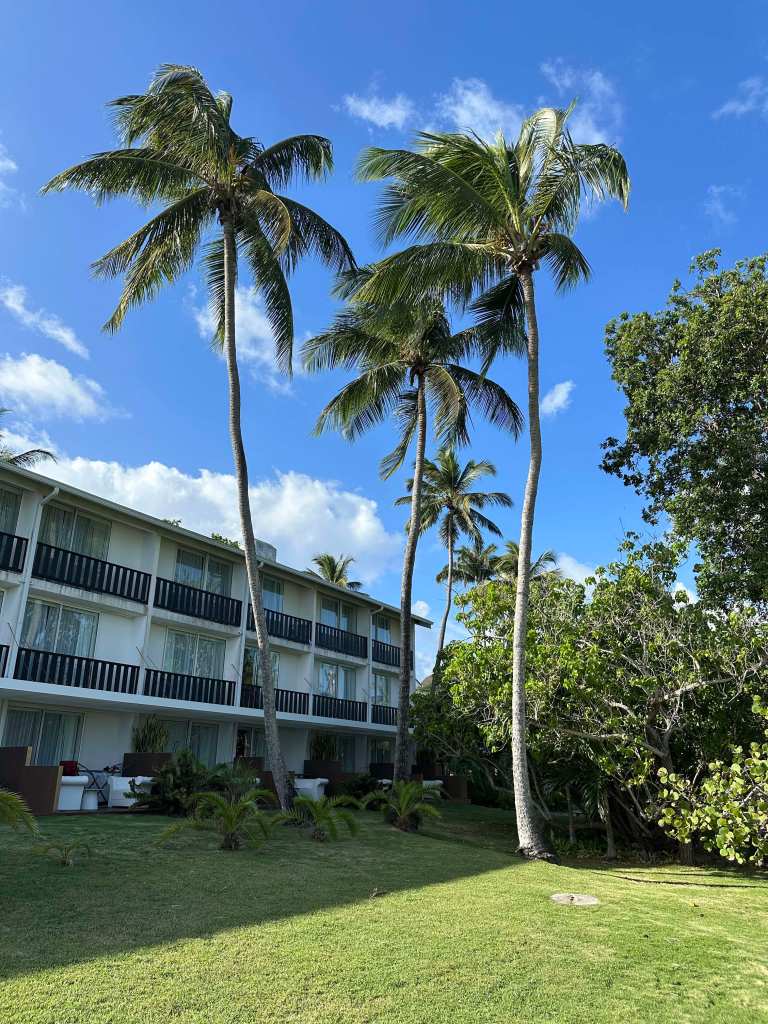 À première vue, l’hôtel séduit par sa silhouette discrète : des bâtiments aux lignes épurées qui se fondent dans le décor, des toits légers balayés par les alizés, et partout, le vert éclatant des palmiers, des bougainvilliers et des hibiscus.
