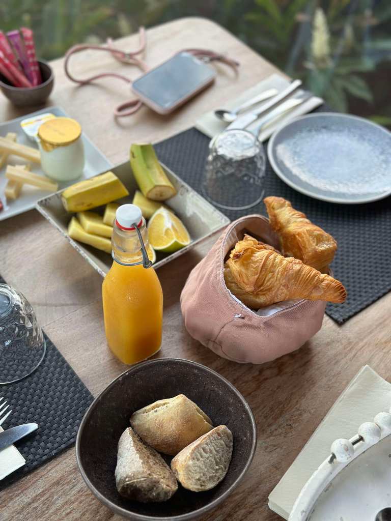En plus de cette vue incroyable, nous avons pu aussi profiter d’un moment au bord de la piscine avant de prendre un verre au bar, une retraite unique dans la nature et la relaxation. A quelques mètres de la piscine et de son soleil levant, nous avons pu profiter d’un petit déjeuner complet et local avec des fruits, des viennoiseries fraiches et un service sur-mesure.