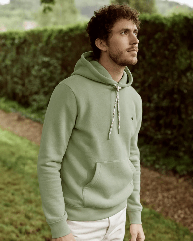La Veste vert d’eau, par exemple, allie élégance urbaine et technicité outdoor, avec son tissu déperlant et sa doublure recyclée. Les Sweat vert broderie arbre reviennent en force, modernisés par une coupe plus ajustée et des teintes automnales comme le vert mature et boisé.