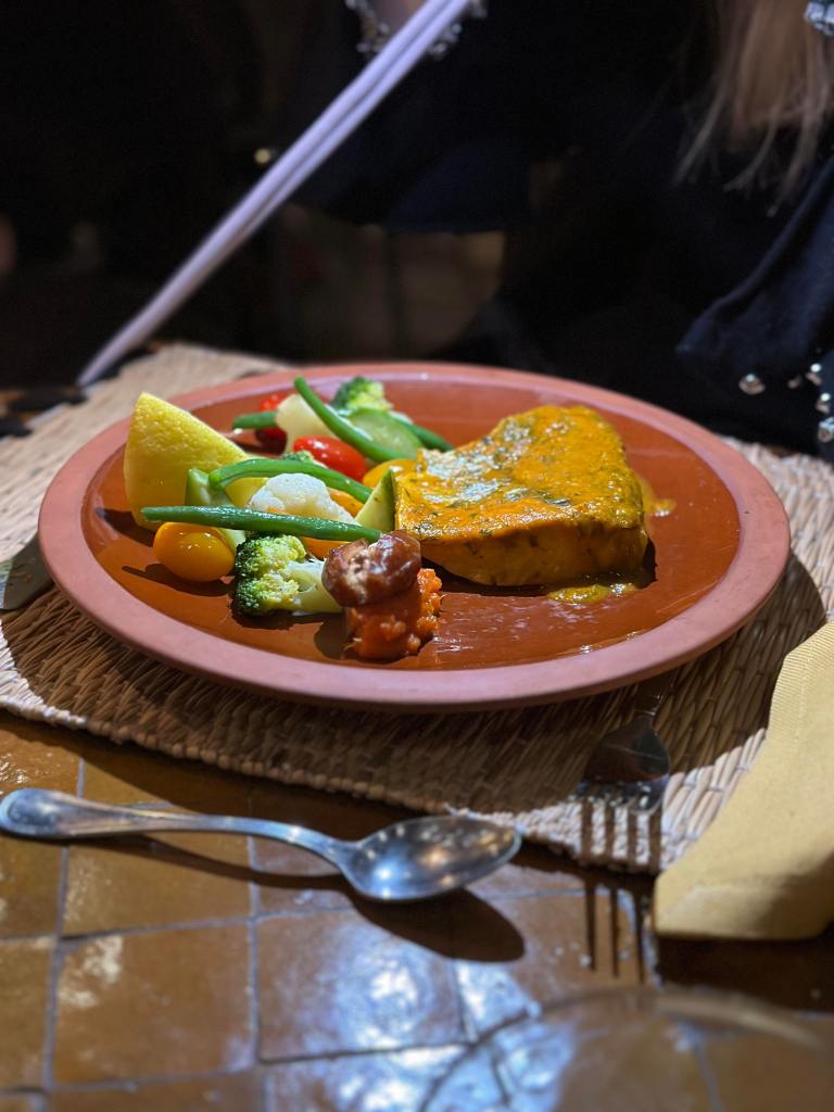 Avec une vue imprenable sur une enclave élégante et romantique, la table explore une cuisine raffinée qui allie l’excellence de la gastronomie marocaine et des influences modernes. Le chef prépare des plats à base d’ingrédients frais et de saison, dans le respect des traditions tout en intégrant des touches contemporaines.