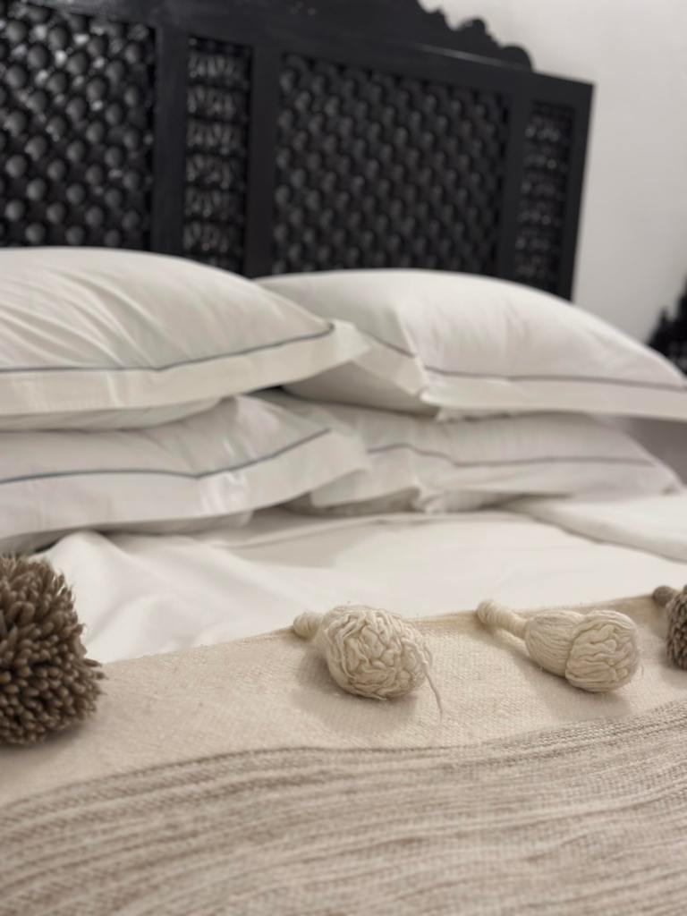 L’ameublement, à la fois élégant et fonctionnel, comprend des lits king-size, des salles de bains en marbre avec des équipements de haute qualité, ainsi que des touches décoratives inspirées de l’artisanat marocain.