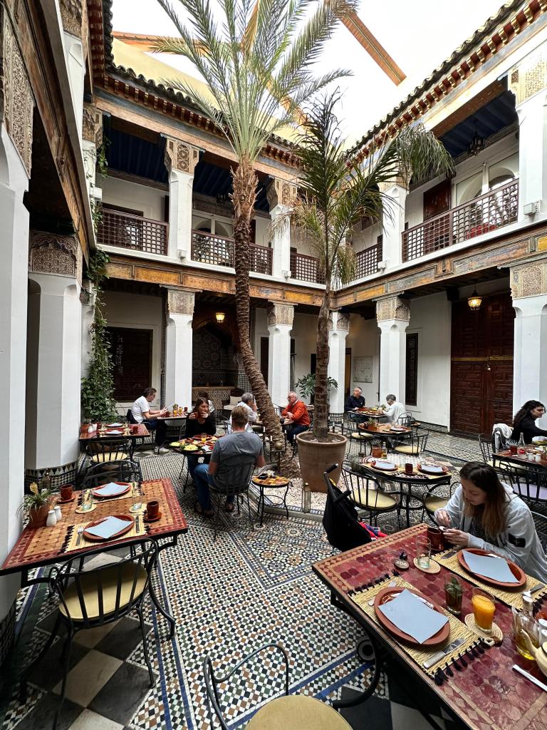 Dans un premier temps, le petit-déjeuner local dans le patio avec ses jus pressés, ses oeufs et ses spécialités orientales. Idéal avant de partir à la découverte des trésors culturels sur la place Jemaa el-Fna et instants de bien-être au spa.