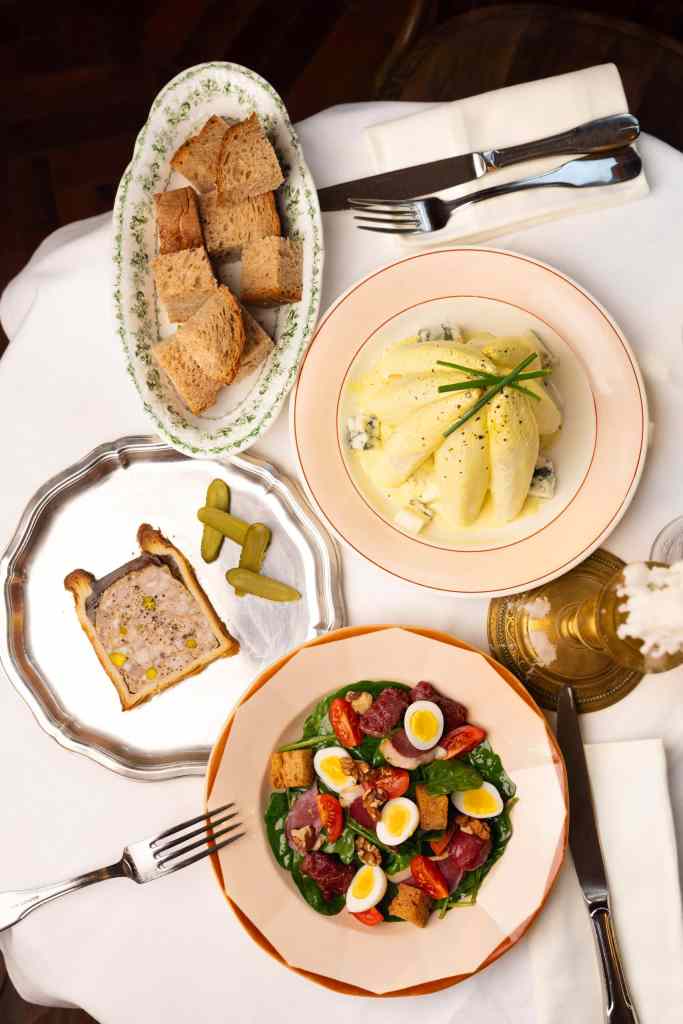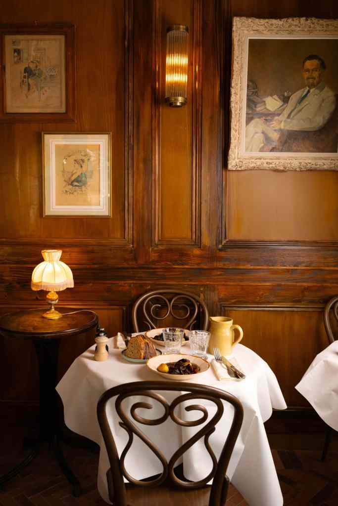 Le décor, quant à lui, est un contre-pied aux tendances minimalistes actuelles : banquettes en velours vert bouteille, vaisselle vintage, nappes blanches amidonnées. On s’y sent bien, comme dans une maison amie. Le personnel de salle, souriant sans excès, attentionné sans obséquiosité, renforce ce sentiment d’intimité assumée.