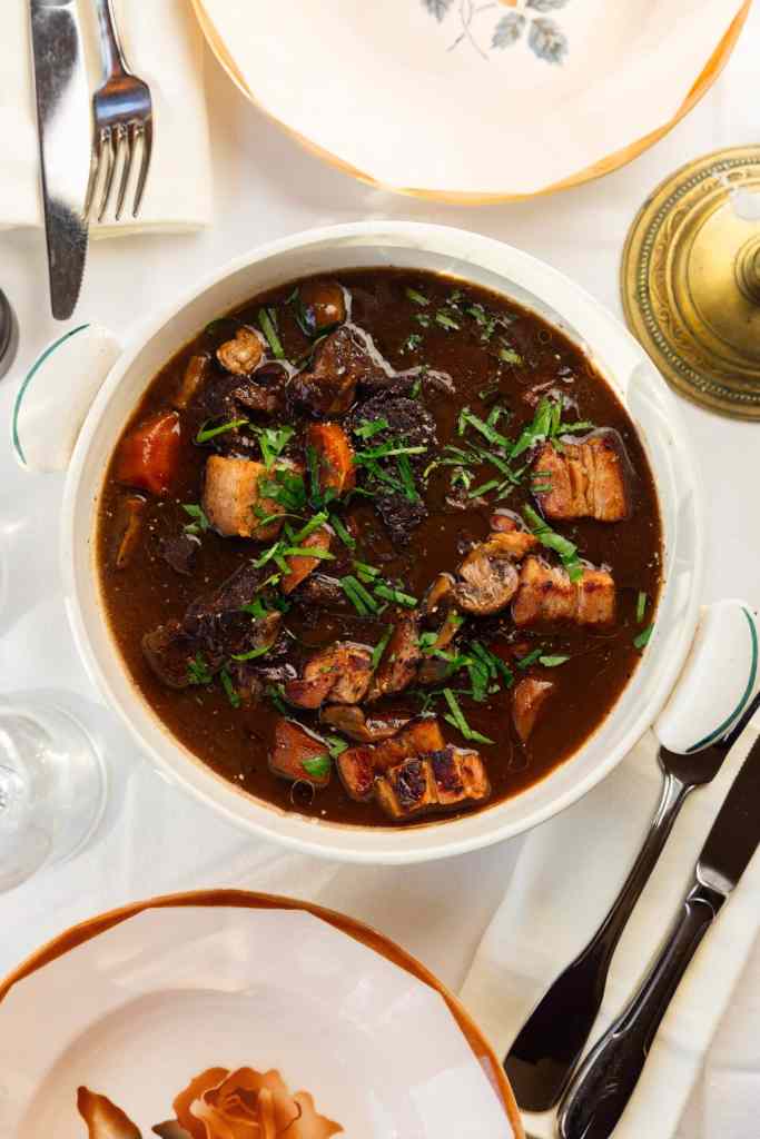 Le cordon bleu au poulet fermier, hommage humble à la cuisine familiale, atteint des sommets grâce à une panure fine, une viande moelleuse, et l’appoint parfait. Le boeuf bourguignon peut lui aussi satisfaire toutes vos envies avec sa cuisson parfaite, sa tendresse en bouche et une certaine subtilité dans le visuel.
