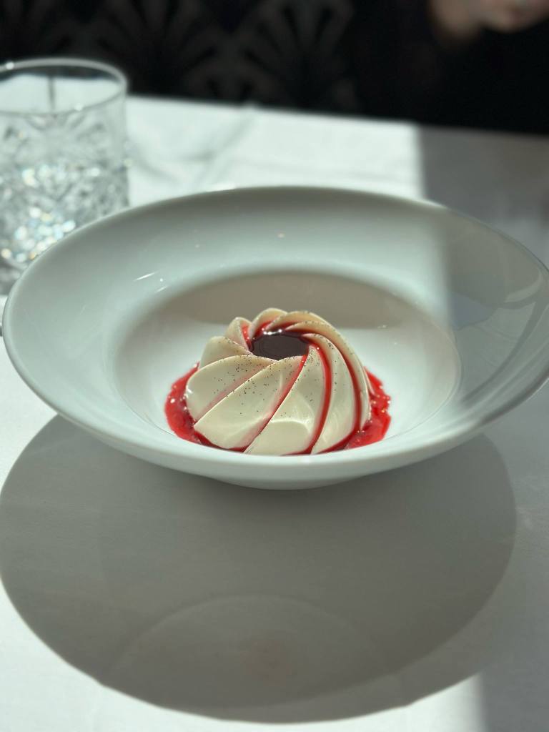 Pour terminer sur une note sucrée en toute légèreté, quoi de mieux que la pavlova à la vanille et son coulis de fruits rouges, une merveille visuelle et gustative.