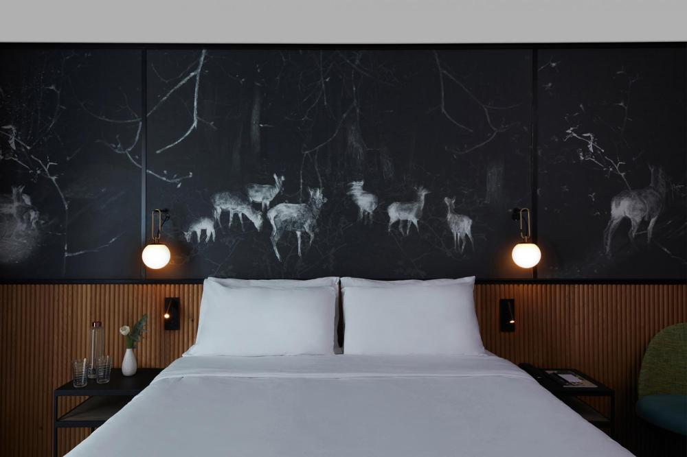 Les 143 chambres de l’hôtel sont à l’image de son concept : soignées, apaisantes, mais jamais aseptisées. Certaines comportent des fresques murales exclusives, d’autres des objets artistiques plus discrets.