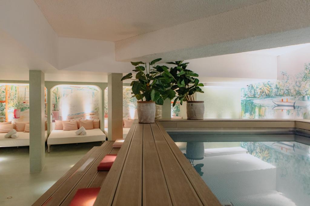 Loin de se limiter à l’aspect visuel, le Drawing House a pensé au bien-être comme une œuvre d’équilibre. Le spa, véritable cocon souterrain, abrite une piscine élégante baignée de lumière, un sauna et un espace de soins. Même là, l’art ne s’efface pas : une fresque au mur dialogue avec l’eau, invitant à la rêverie.