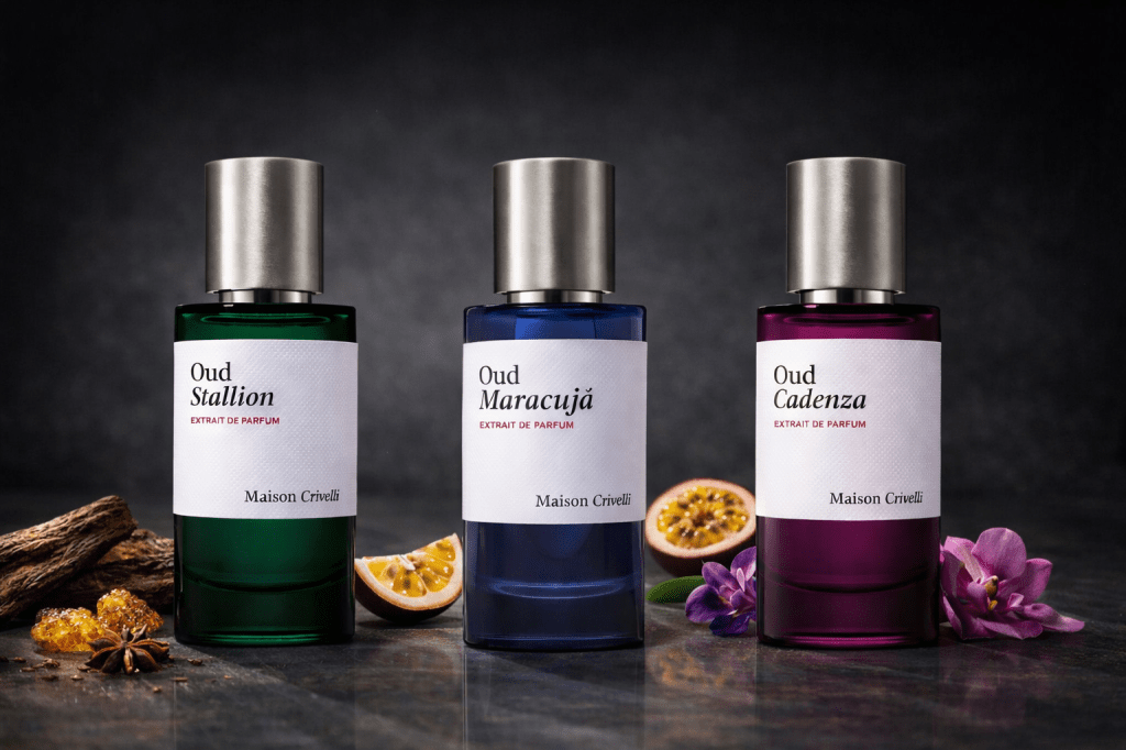 À travers Oud Maracujá, Oud Cadenza et Oud Stallion, Maison Crivelli démontre toute la richesse expressive du oud.