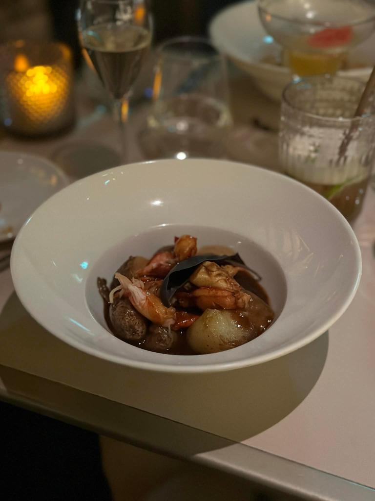 Un bourguignon retravaillé avec un homard de qualité et sa sauce sucrée divine font de Madame Brasserie un lieu à part. Un poisson de ligne, nacré et accompagné d’un jus végétal intensément parfumé, rappelle que la simplicité peut être spectaculaire lorsqu’elle est maîtrisée.