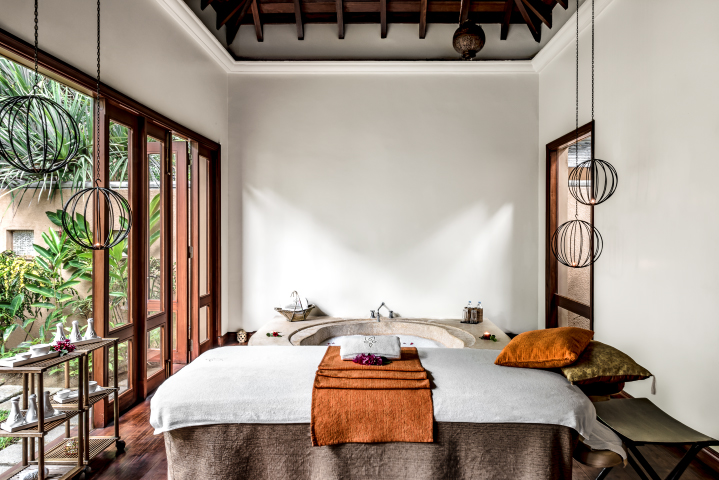Les espaces de soins, conçus comme des pavillons ouverts sur la nature, renforcent la sensation de calme et de déconnexion. Huiles essentielles, techniques ancestrales et ambiance feutrée se combinent pour offrir une expérience profondément régénérante. Ici, le temps ralentit, laissant place à une relaxation totale.